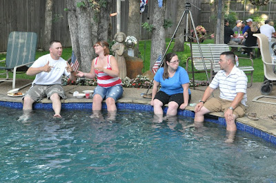 The whole neighborhood gets involved and (although I didn't get a photo) the entire street has American flags lining the street on both sides leading up to Teresa and Joe's house. The flags also line Joe and Teresa's driveway. Very festive and so patriotic!